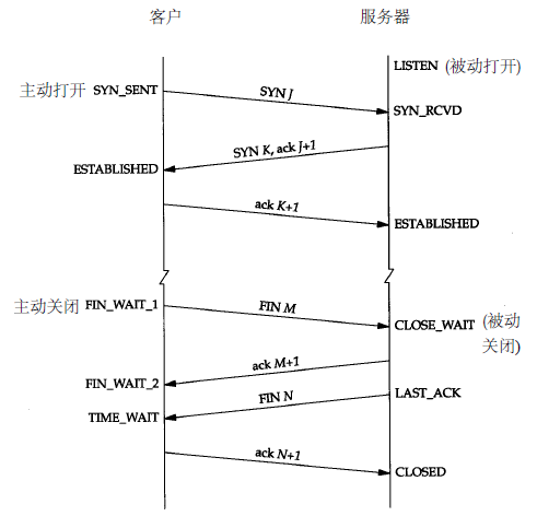 服务器端:socker()建立套接字,绑定(bind)并监听(listen),用accept()等待客户端连接。