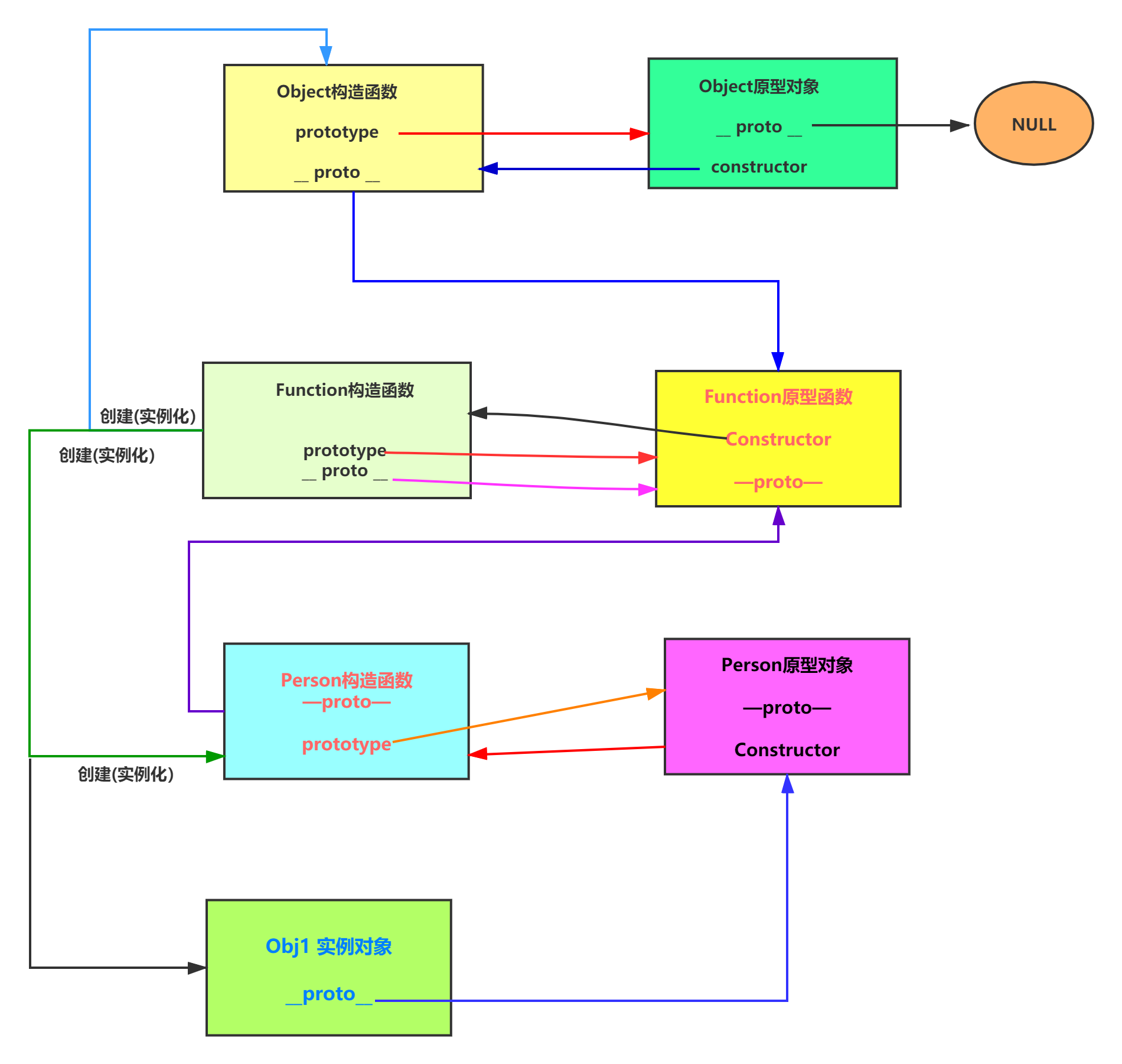 对象原型(_ _ proto _ _)和构造函数原型对象(prototype)里面都有一个属性constructor属性,constructor称为构造函数,因为它指回构造函数本身。