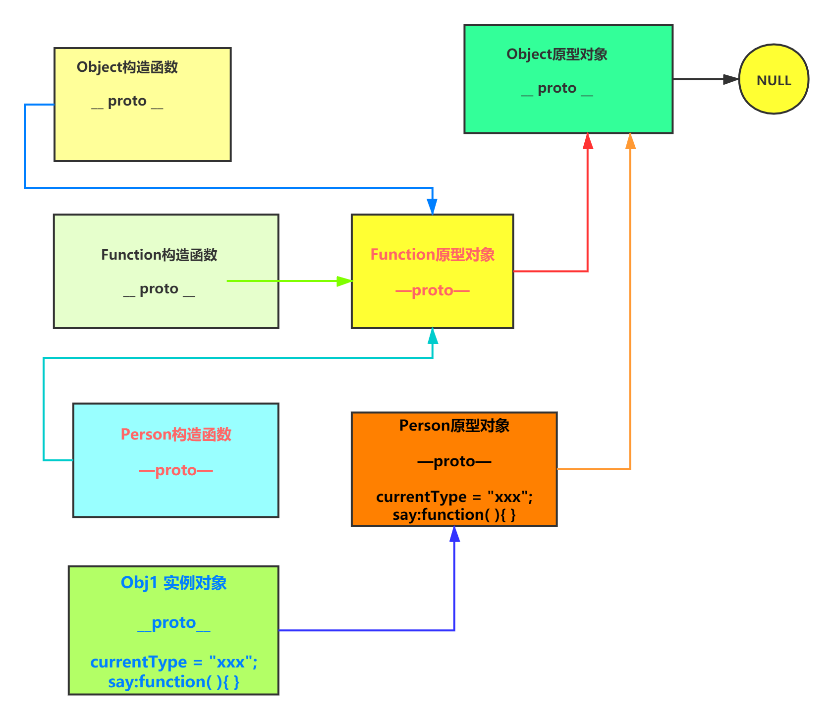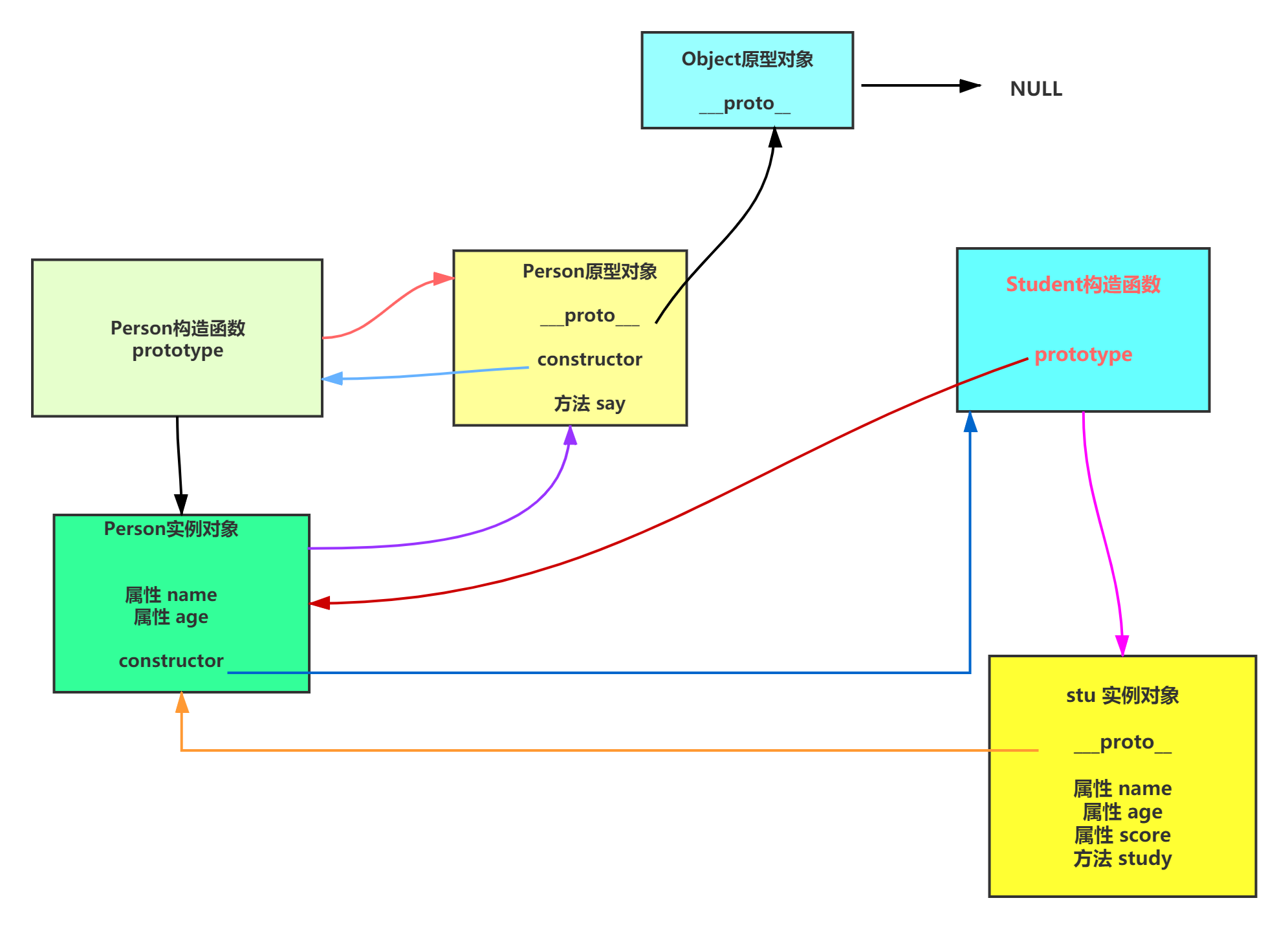- 每个对象都会有一个属性__ proto __ 指向构造函数的prototype原型对象。