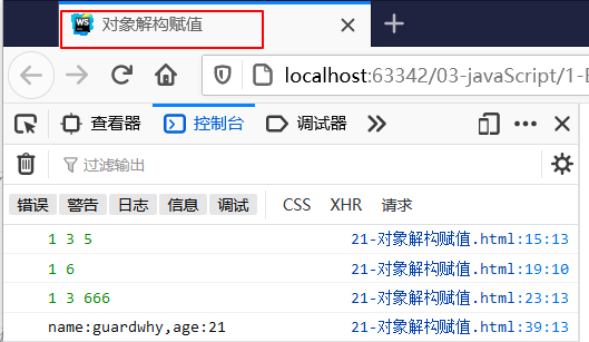 对象的解构赋值和数组的解构赋值 除了符号不一样, 其它的一模一样
